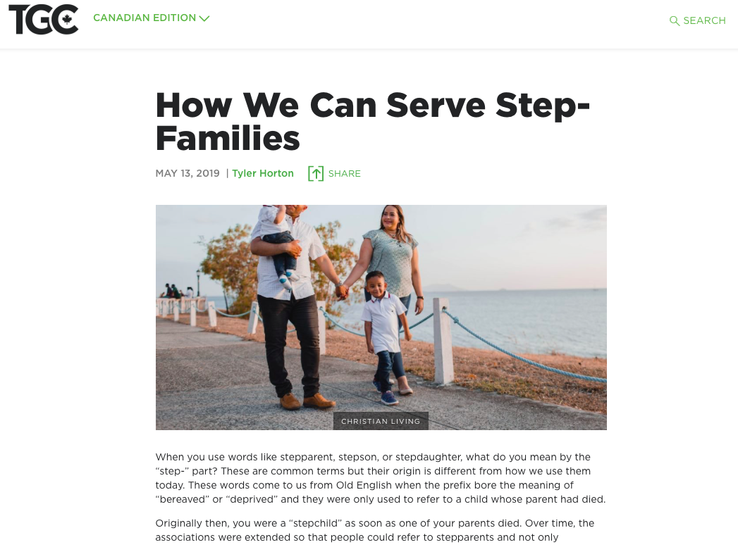 For those of you who may have missed it, I recently had an article go up on the Gospel Coalition Canada site. This one is about some of the unexpected pressures that stepfamilies face and what the church can do to serve these families. Here is an excerpt: