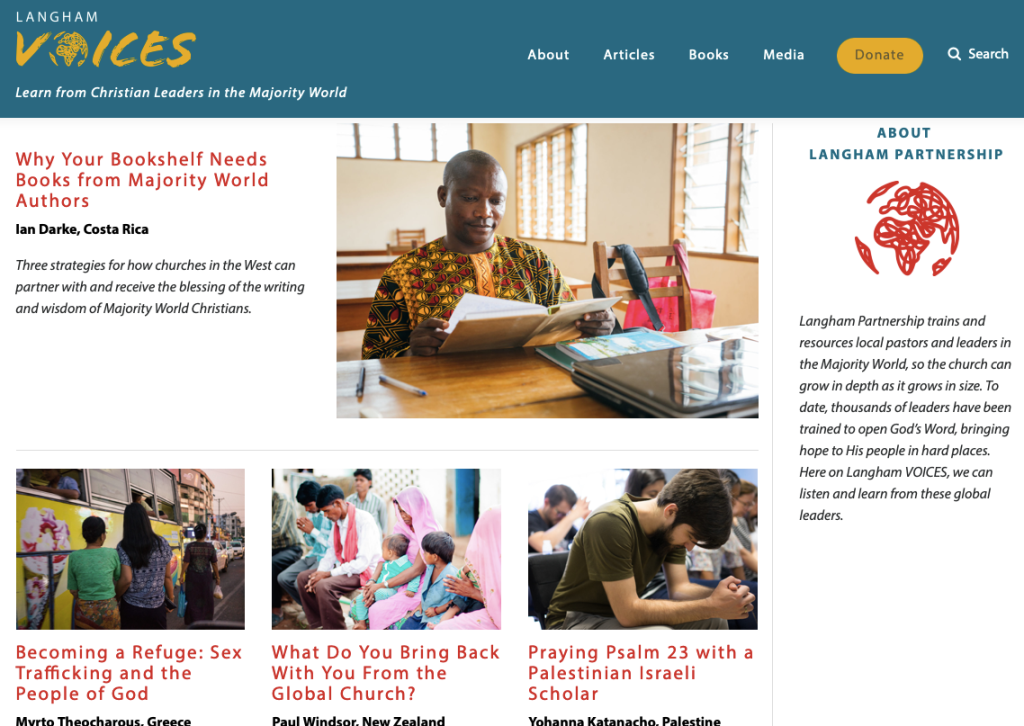 This need to listen to the Global Church sets up an introduction to Voices, a new website by Langham Partnership which aims to facilitate and amplify the voice of Christian leaders from the majority world. I’ve only just begun to dig through the site myself, but there is already a lot of good material gathered here. A video of a previous webinar on what American Christians can learn from Majority World Christians would be a great place to start.